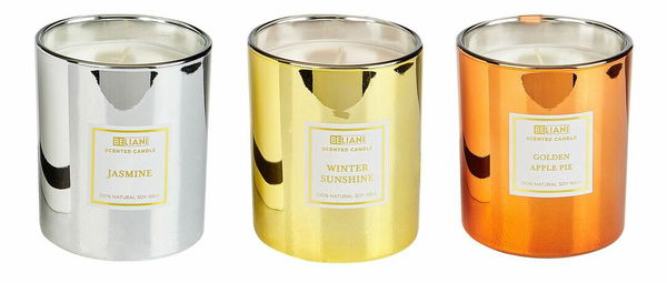 - Sada 3 ks vonných svíček jablko/jasmín/zimní slunce Graciano (zlatá)