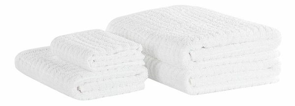 Tato sada výjimečně měkkých a nadýchaných ručníků je tou nejlepší volbou do vaší koupelny. Zahrnuje vše, co budete potřebovat: ručník pro hosty, ručník na ruce, osušku a velkou osušku. Vzorovaná textura je příjemná nejen na dotek, ale také na pohled. Ručníky jsou vyrobeny z dlouhých vláken kvalitní bavlny, jsou jemné k pokožce a ideální pro každodenní používání. Jejich struktura zaručuje vysokou savost a rychlé schnutí.