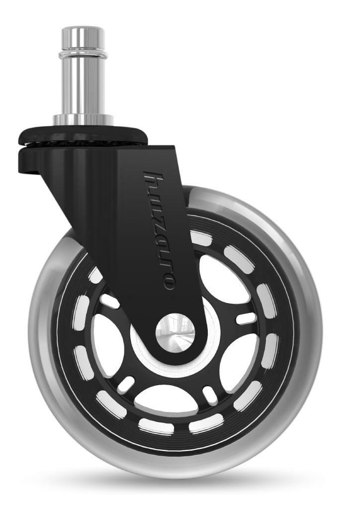 Kolečka 2.0 Black jsou vysoce kvalitní gumová kolečka, která vám umožní personalizovat každé křeslo. Kolečka nezanechávají na podlaze žádné stopy. Jsou bezpečné pro dřevo, panely, dlaždice, lamináty a vinyl. To vše díky použití pružné pryže. Díky ocelové konstrukci se nemusíte bát o odolnost – kola vydrží dlouhá léta. K sestavení kol není zapotřebí žádné nářadí. Stačí jeden jednoduchý pohyb a umístěte je na své místo. Každé kolo je uloženo v pancéřovém ocelovém plášti. V její horní části jsou univerzální ložiska, díky kterým se může podstavec židle volně pohybovat ve všech směrech. Pohyb koleček je nejen plynulý, ale především tichý. Rychlé a plynulé rolování umožňuje měnit směr pohybu bez námahy a hluku.