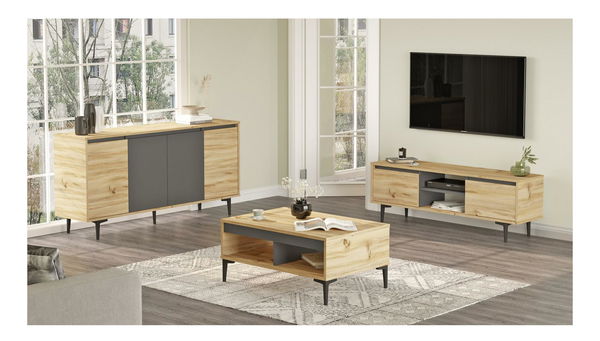 Sada nábytku do obývacího pokoje Arvoiden (dub + antracit)
