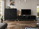 Souprava nábytku do obývacího pokoje Astradon II potěší milovníky jednoduchého designu s elegantním akcentem. Díky minimalistickému tvaru se set perfektně hodí do každého aranžmá, od klasického, přes moderní, až po glamour. Dokonale doplní místnost. Souprava se skládá z TV skříňky a komody. Souprava nábytku do obývacího pokoje nabízí velkou úložnou kapacitu. Do TV skříňky se bez problémů vejde multimediální vybavení, herní konzole a další příslušenství. Komodu lze využít k uložení oblečení, nádobí nebo dokumentů. Má až osm prostorných úložných prostorů! Celou kompozici doplňují zlaté nohy, které pomůžou udržet pod nábytkem čistotu.
