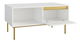 Souprava nábytku do obývacího pokoje Gelean I vás inspiruje ke změně prostředí! Najdete zde prvky, které obývací pokoj nejen ozdobí, ale také mimořádně funkčně zorganizují. Souprava nábytku do obývacího pokoje obsahuje tři prvky. TV skříňka o šířce 200 cm je dokonalým doplňkem zábavné zóny v obývacím pokoji. Prostorné přihrádky byly navrženy pro diskrétní uložení kabelů, desek a jiné elektroniky. Široká komoda nabízí praktický prostor pro bytový textil, oblečení a nádobí. Skvěle bude vypadat vedle stolu s židlemi. Soupravu doplňuje moderní konferenční stolek s úložným prostorem. Nábytek do obývacího pokoje vyzařuje jednoduchý, ale elegantní styl, který ulahodí vkusu milovníků nadčasového interiérového designu. Jedinečný design soupravy zvýrazňují zlaté detaily.