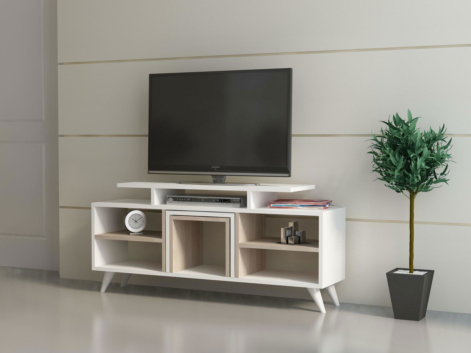 Sada nábytku do obývacího pokoje Kutanetta (bílá + světlé dřevo)