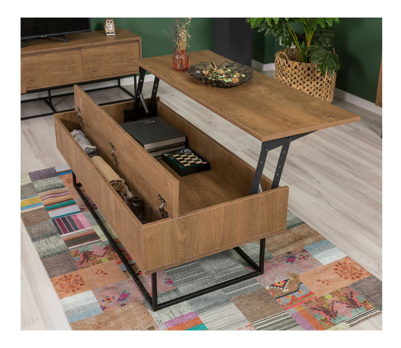 tloušťka: 18 mm, kovové nohy, velikost TV jednotky: šířka: 140 cm, výška: 50 cm, hloubka: 40 cm, velikost konferenčního stolku: šířka: 120 cm, výška: 43 cm, hloubka: 60 cm