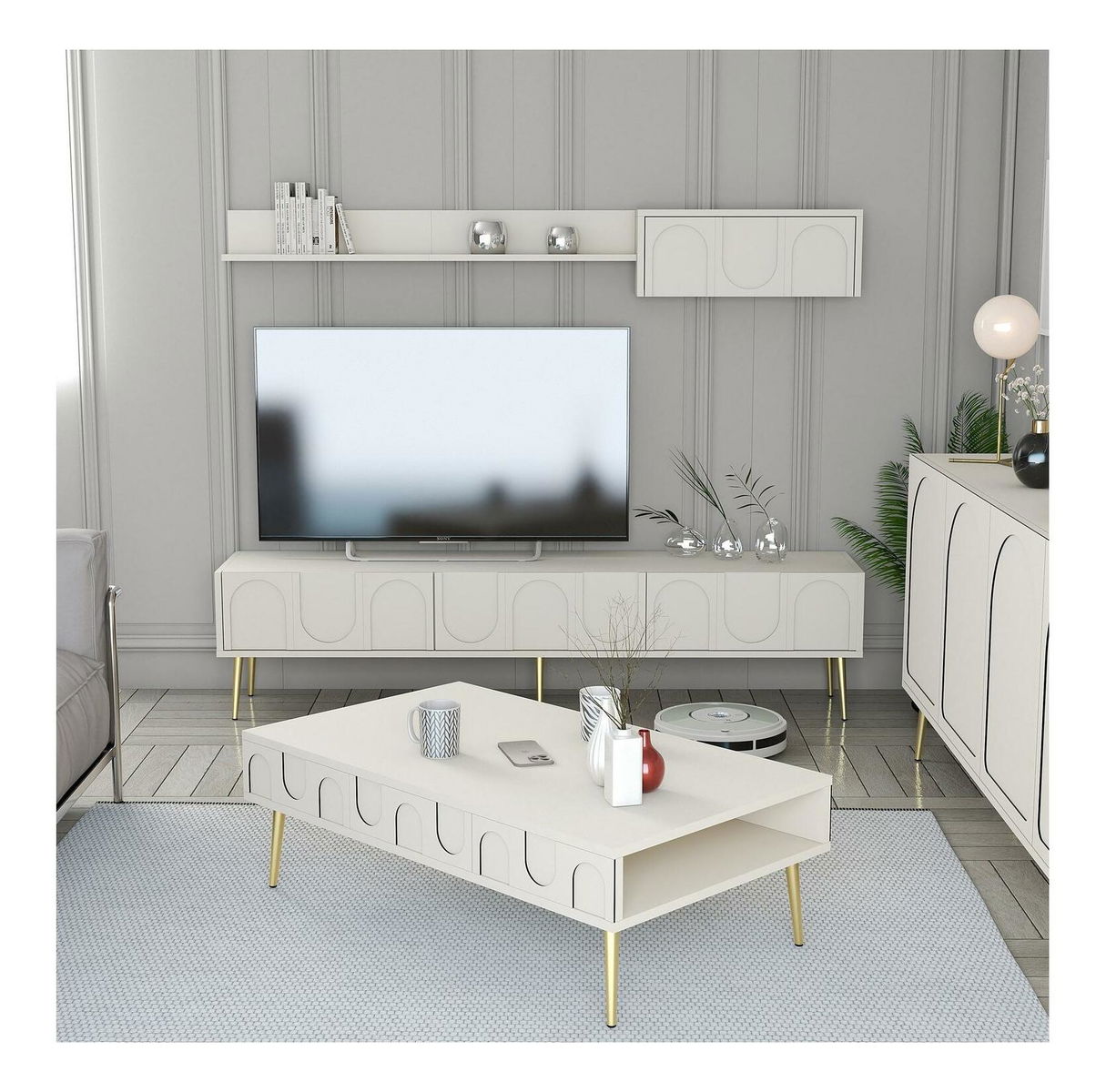 Sada nábytku do obývacího pokoje Lyantela (krémová + zlatá)
