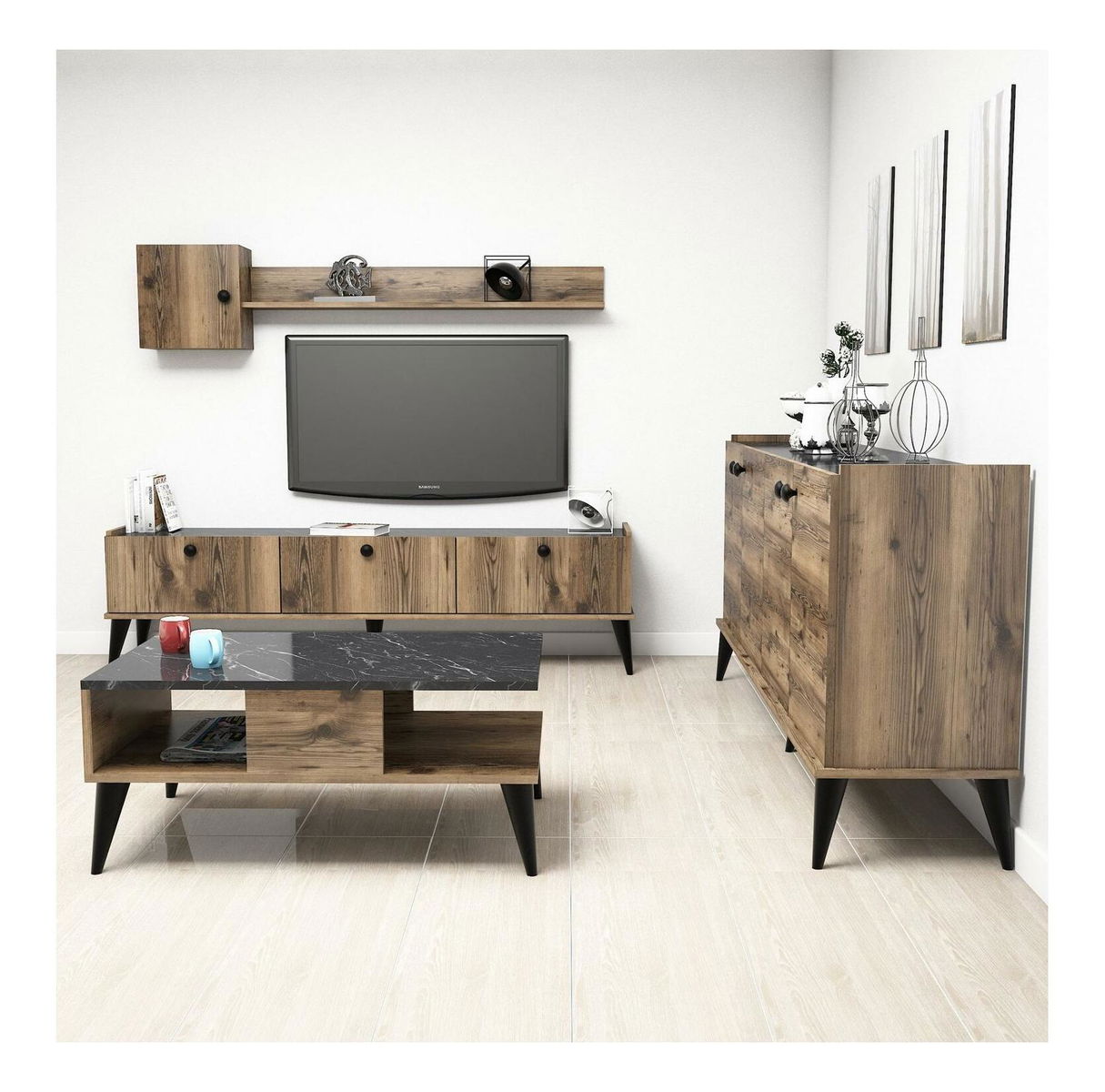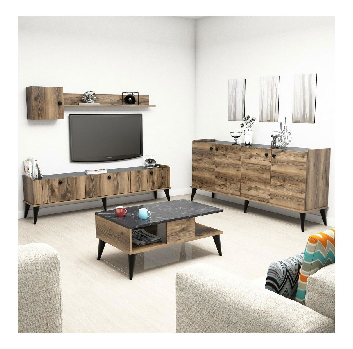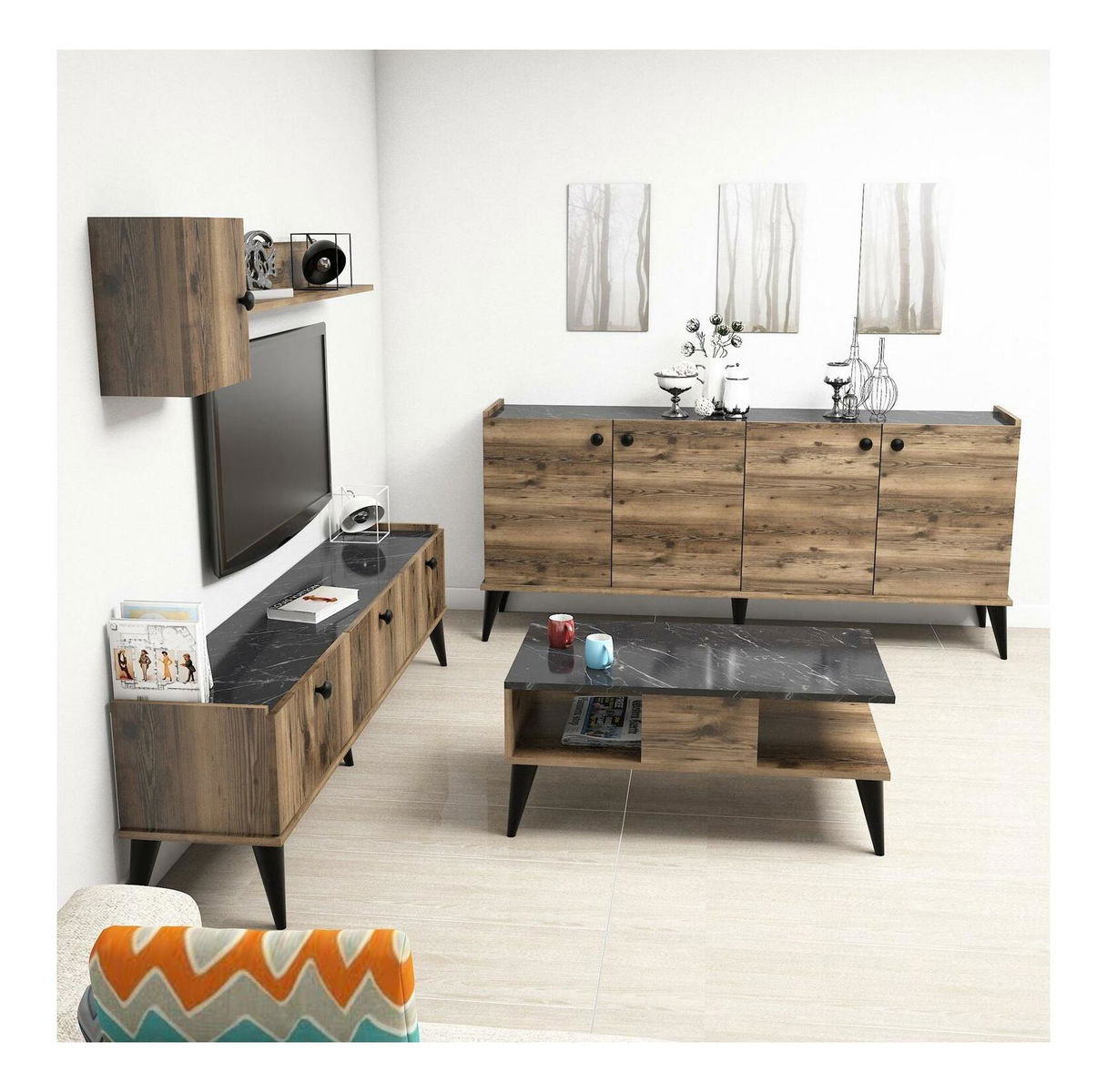 Sada nábytku do obývacího pokoje Lydie 2 (ořech + mramor)