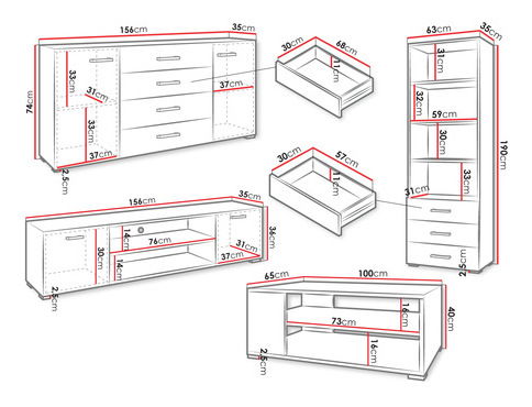 Souprava nábytku do obývacího pokoje Teratino I byla navržena s ohledem na funkční úložný prostor. Každý prvek má promyšlené uspořádání odkládacích přihrádek pro uspořádání co největšího počtu věcí. Četné skříňky a zásuvky jsou doplněny otevřenými policemi pro vystavení předmětů důležitých pro uživatele. Souprava nábytku obsahuje TV skříňku, polici se zásuvkami, komodu a konferenční stolek s policí. Světlá barva čel a korpusů se hodí k mnoha aranžmá.
