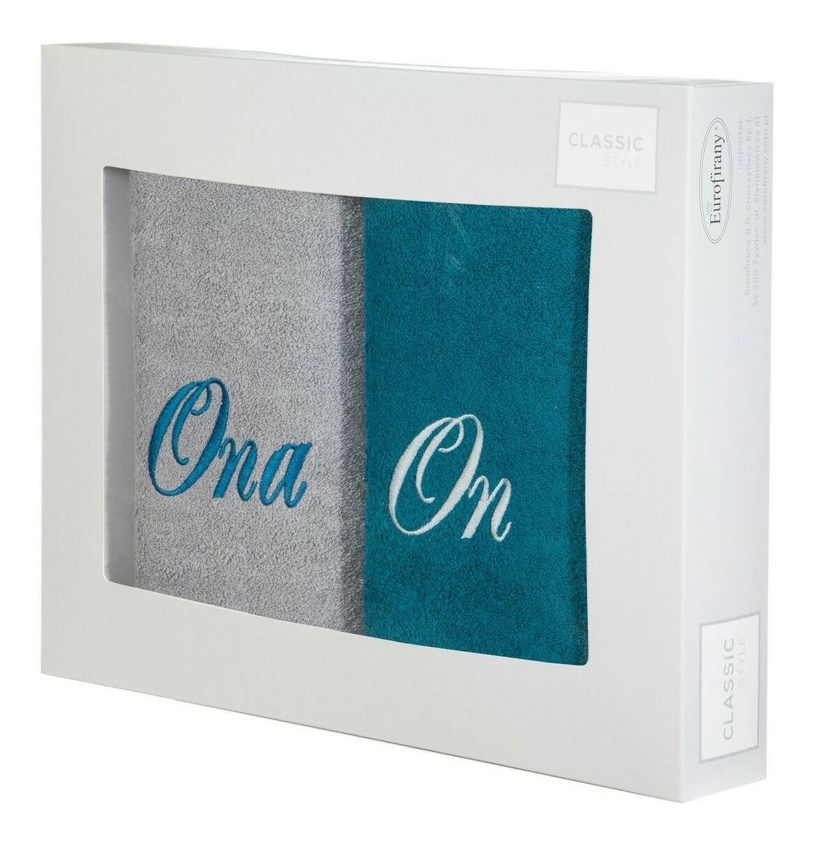 Sada ručníků 50x90 cm Couple (šedá + tyrkysová)
