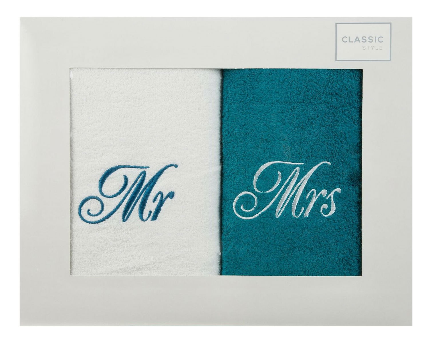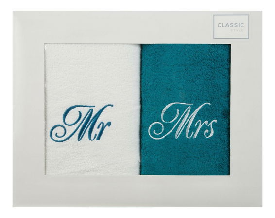 Sada ručníků 70x140 cm Mr Mrs (bílá + modrá)