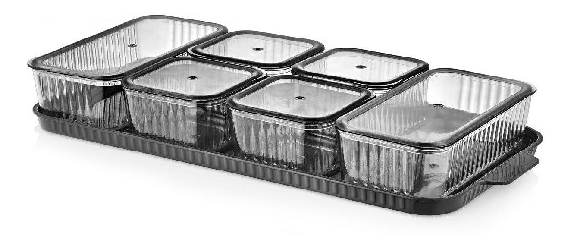 Objevte krásu a funkčnost Karly, klenotu v naší nabídce. Každý kousek sada úložných dóz na potraviny (13 ks.) vypráví příběh o kvalitě a designu. Vyznačuje se 100% plexisklo a je navržen tak, aby vydržel každodenní používání. Některé z výjimečných vlastností zahrnují bez BPA, Velikost: 19 x 37 x 6 cm, Rozměry misky: 15 cm - 300 ml (6 kusů), víko: 8,5 cm (6 kusů), Podnos (1 kus). Karla je ideálním doplňkem pro každou domácnost, přináší styl a funkčnost na každý stůl.
