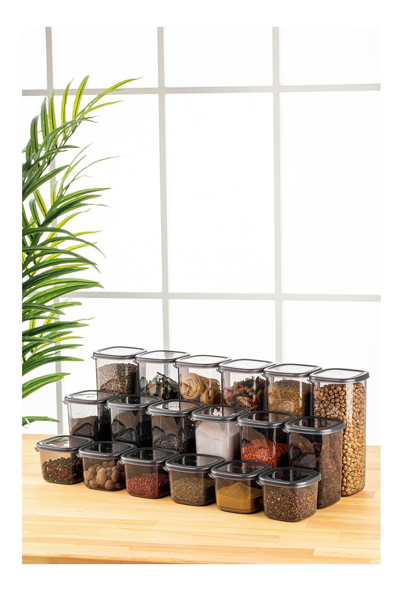 Sada úložných dóz na potraviny (18 ks.) Bubo 18 (antracitová)