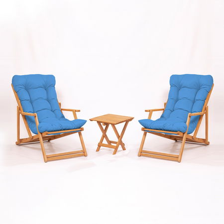 Sada zahradního stolu a židlí (3 kusy) Mackenzie 6 (modrá + přírodní)