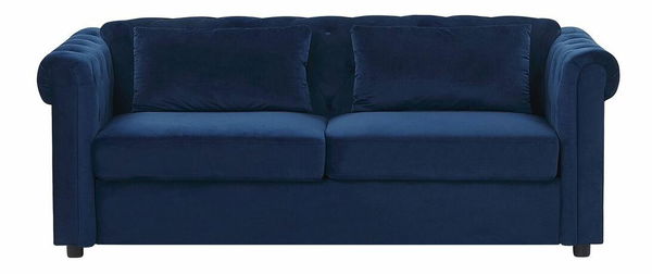 Tato pohovka je kombinací populárního designu Chesterfield, trendového stylu glamour a funkčnosti a vašemu obývacímu pokoji dodá výrazný charakter. Díky vyztužené konstrukci a hluboké sedací ploše je přímo stvořená k odpočinku. Šikovně ukrytý výsuvný mechanismus umožňuje rozložení pohovky na postel pro jednu osobu, která poslouží jako postel pro hosty. Prošívání s knoflíky či zahnuté boční opěrky jsou pro styl Chesterfield charakteristické a jsou doplněny sametovým čalouněním, které dotváří design pohovky, která je synonymem moderního luxusu. Pohovka má jednoduché nohy v černé barvě, které jsou minimalistickým detailem zjemňujícím celkový vzhled tohoto kusu nábytku.