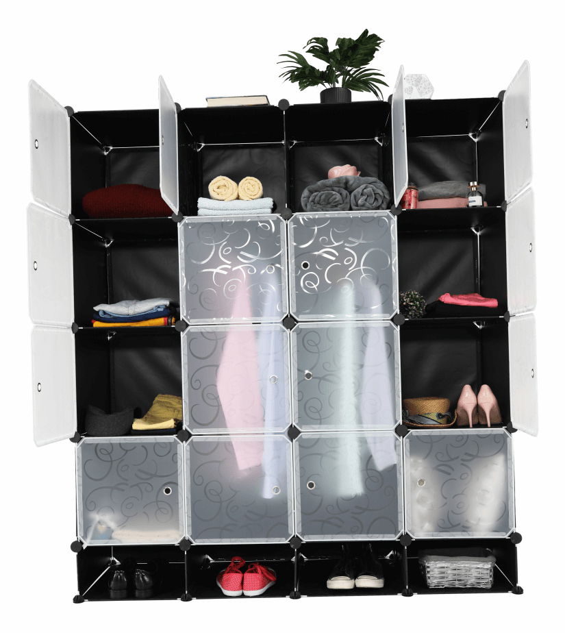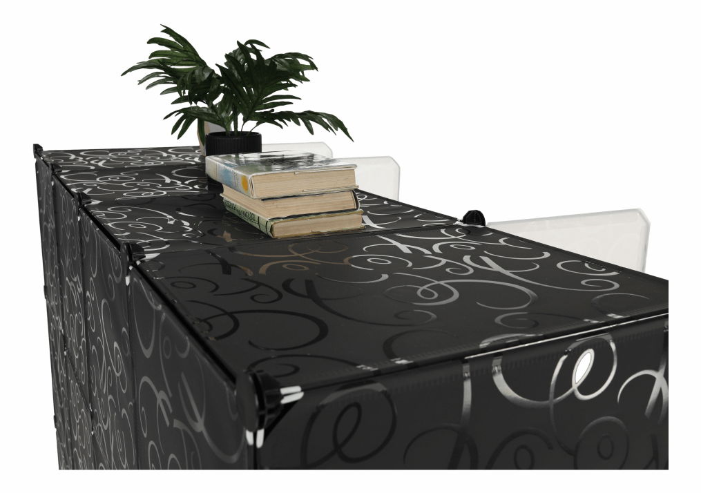 Šatní organizér Riodus TYP 02 (černá + mléčná + bílá) o výšce 165 cm a hloubce 47 cm Vám nabízí jednoduché uspořádání Vašich oděvů a věcí. Organizér je vyroben z plastu a kovu a přední strana lze jednoduše uzavřít pomocí závěsu. Materiál organizéru je látka/kov a máte možnost si vybrat z různých barev jako je černá, mléčná bílá nebo vzor. Šatní organizér Riodus TYP 02 je modulární typ s věšákovou tyčí, policovou částí a spojovacími prvky vyrobenými z pevného ABS plastu, které Vám umožní různé varianty rozmístění úložného prostoru. Organizér má také úložný prostor na boty a dodává se Vám v demontu. S tímto šatníkovým organizérem se Vám bude jednoduše a přehledně pořádat Vaše garderoba.