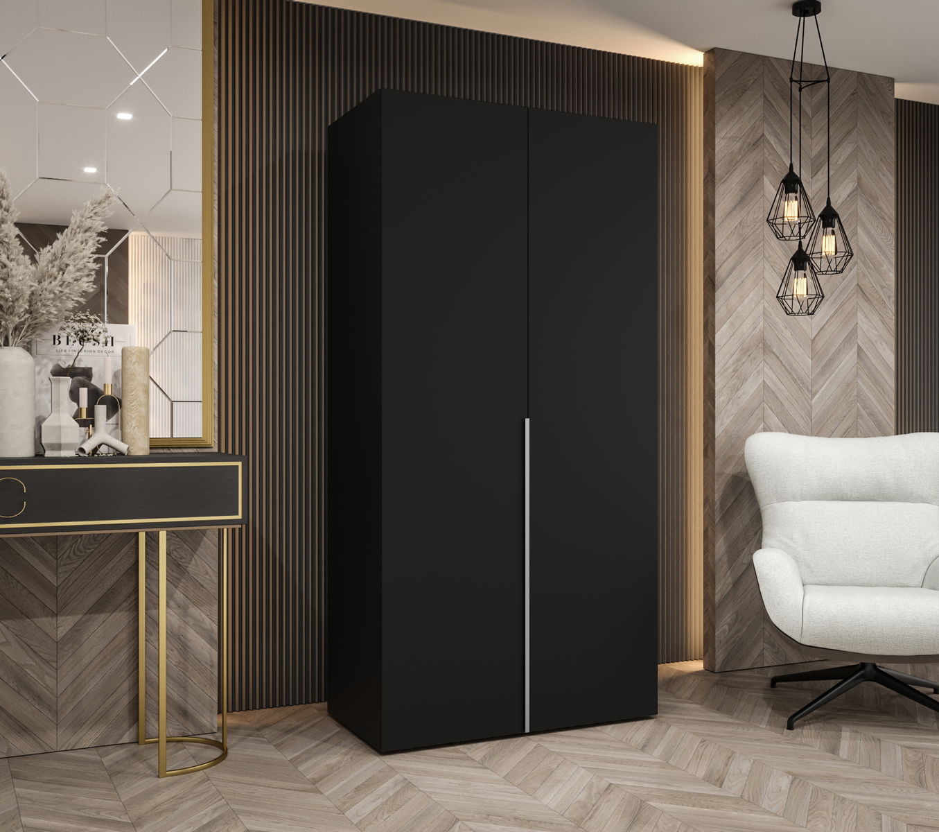 Šatní skříň 100 cm Alice 1 (černá + kašmír)