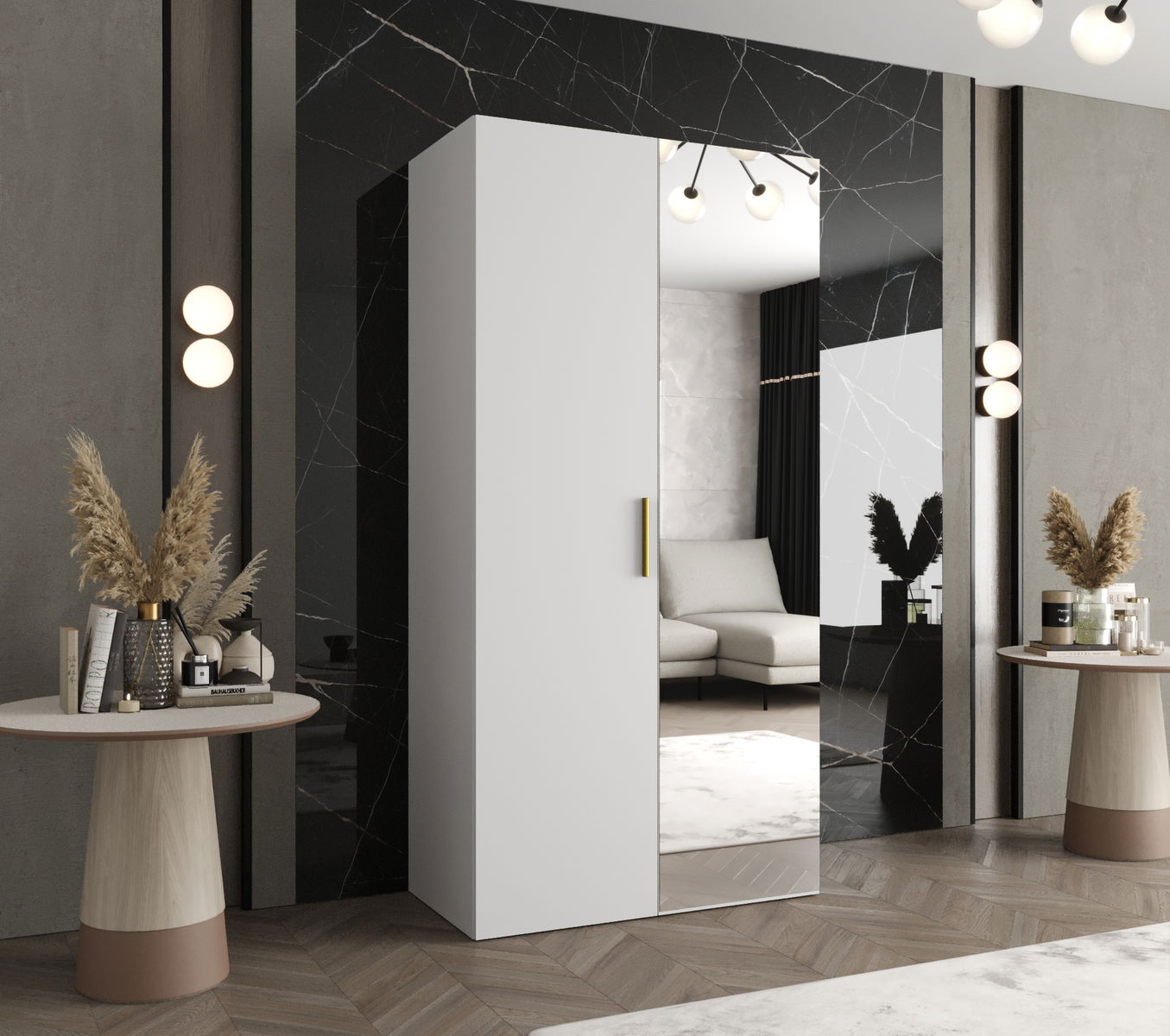 Šatní skříň 100 cm Borry 2 (bílá + zlatá)