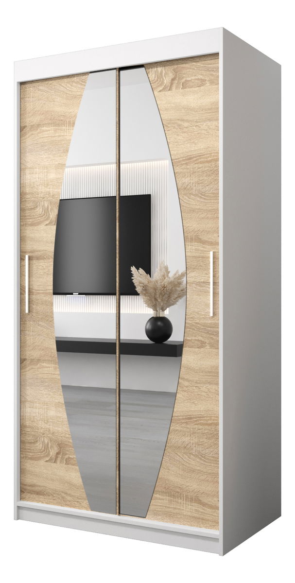 Šatní skříň 100 cm Eclipse (bílá matná + dub sonoma)