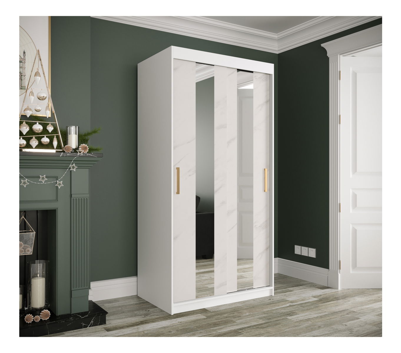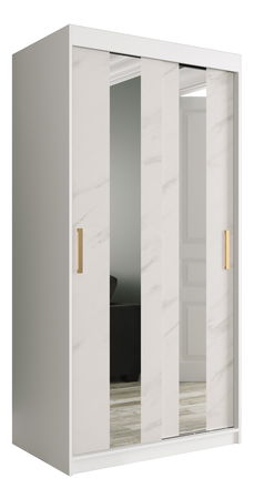 Šatní skříň 100 cm Marbelo P (matná bílá + bílý mramor)