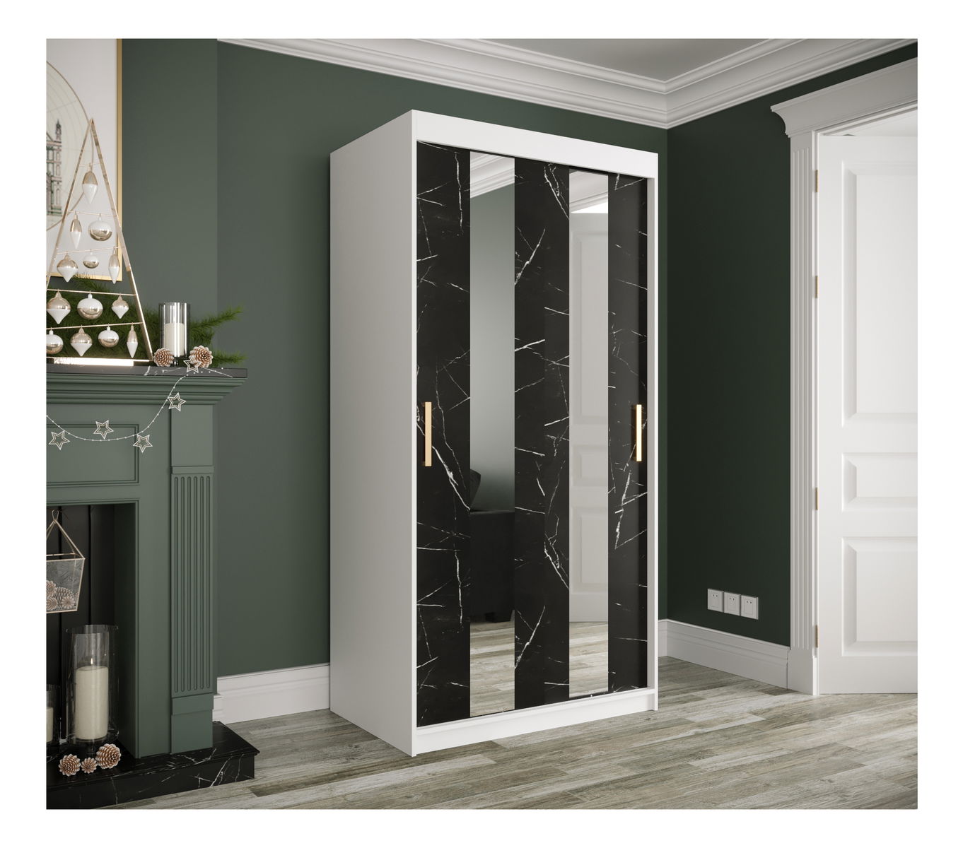 ZobrazitPředstavujeme vám šatní skříň Marbelo s posuvnými dveřmi: stylový a funkční doplněk vaší ložnice. Tato skříň s podmanivými akcenty připomínajícími mramor vyzařuje bohatství. Její zrcadlové posuvné dveře slouží nejen jako praktická pomůcka pro kontrolu vašeho oblečení, ale také osvětlují váš prostor. Zlaté úchytky dodávají šmrnc a zajišťují bezproblémový přístup do skříně. Uvnitř objevíte dostatek úložného prostoru pro oblečení, boty a doplňky, a to vše v odolném a elegantním provedení. Univerzální design skříně s posuvnými dveřmi Marbelo se bez problémů hodí do různých stylů místností, což z ní činí všestranný a poutavý kus nábytku. Pozvedněte estetiku a organizaci své ložnice díky skříni s posuvnými dveřmi Marbelo, která spojuje luxus s praktičností v kompaktním a úžasném balení.