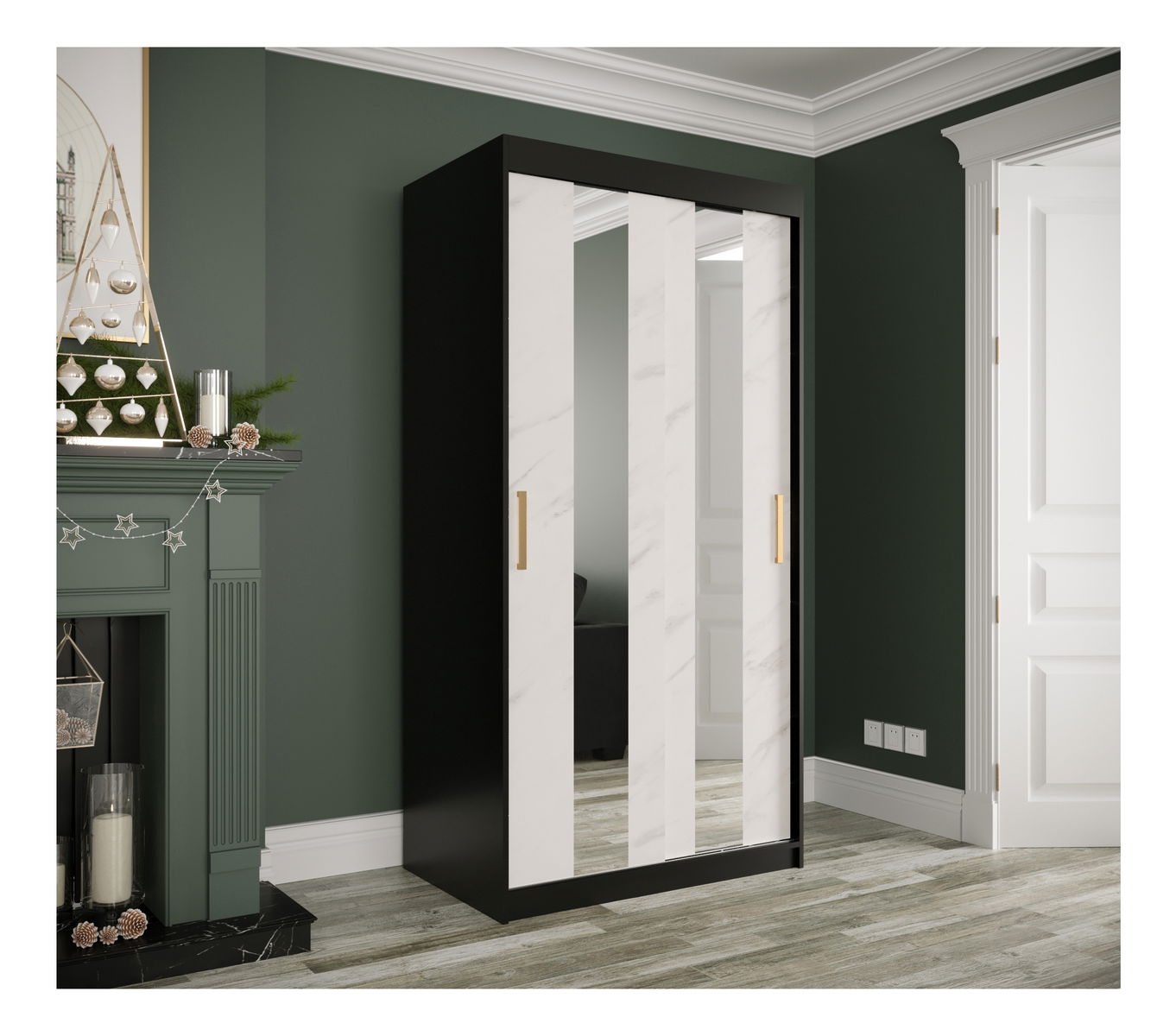 Šatní skříň 100 cm Marbelo P (matná černá + bílý mramor)