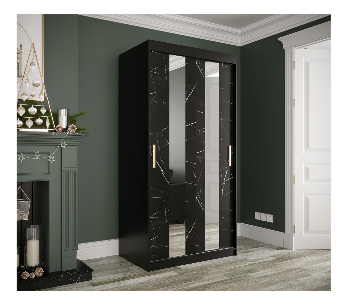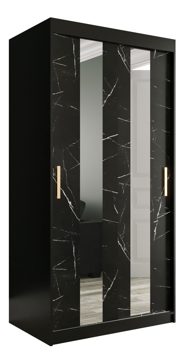 Šatní skříň 100 cm Marbelo P (matná černá + černý mramor)