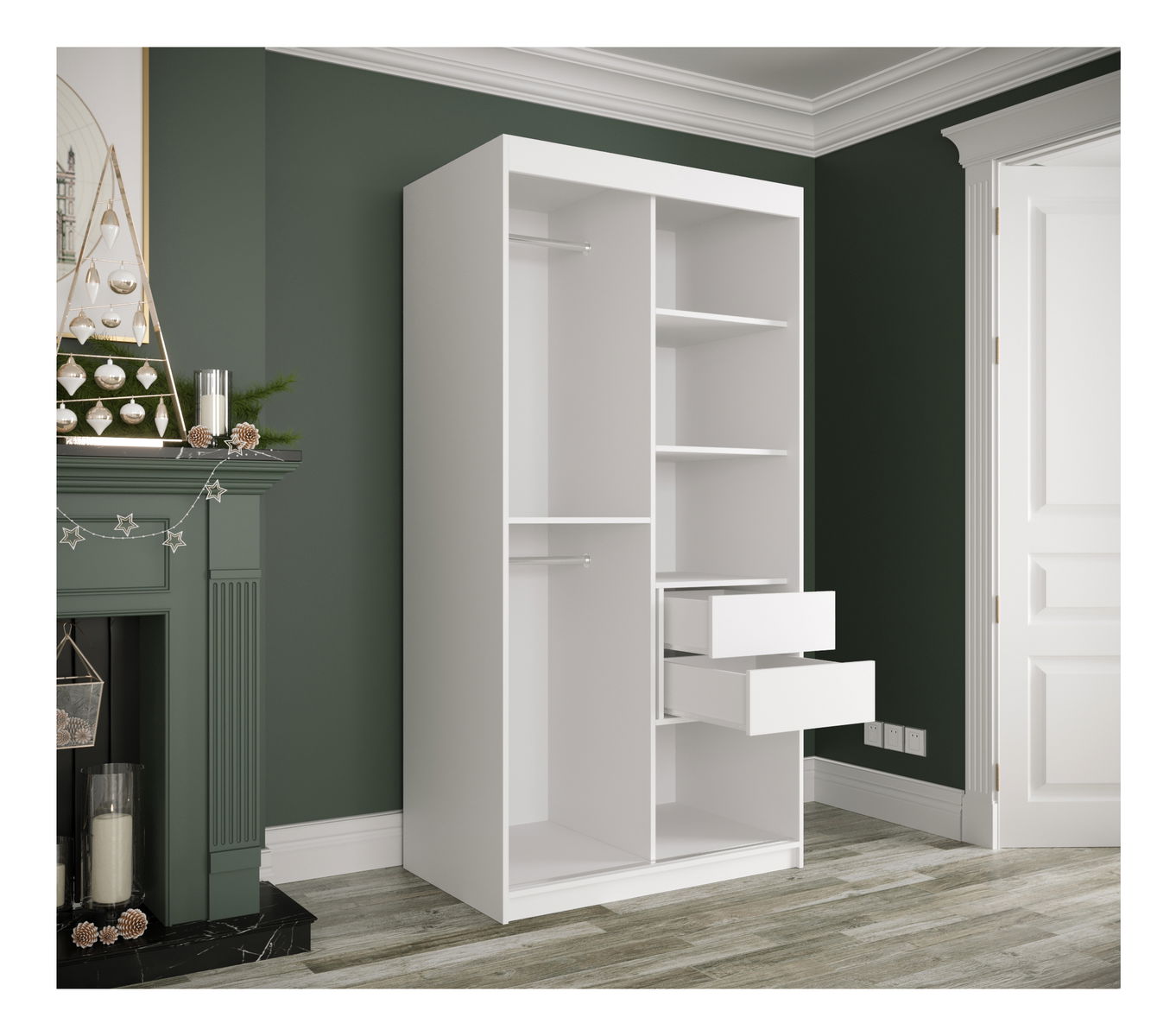 ZobrazitPředstavujeme vám šatní skříň Marbelo s posuvnými dveřmi: stylový a funkční doplněk vaší ložnice. Tato skříň s podmanivými akcenty připomínajícími mramor vyzařuje bohatství. Zlaté úchytky dodávají šmrnc a zajišťují bezproblémový přístup do skříně. Uvnitř objevíte dostatek úložného prostoru pro oblečení, boty a doplňky, a to vše v odolném a elegantním provedení. Univerzální design skříně s posuvnými dveřmi Marbelo se bez problémů hodí do různých stylů místností, což z ní činí všestranný a poutavý kus nábytku. Pozvedněte estetiku a organizaci své ložnice díky skříni s posuvnými dveřmi Marbelo, která spojuje luxus s praktičností v kompaktním a úžasném balení.