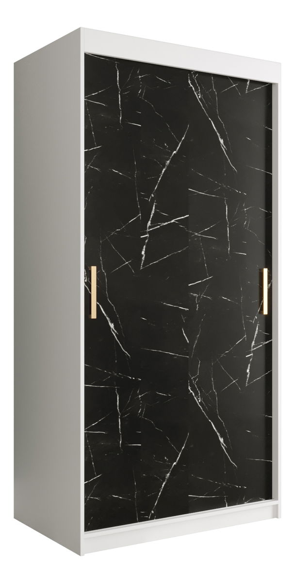 Šatní skříň 100 cm Marbelo T (matná bílá + černý mramor)