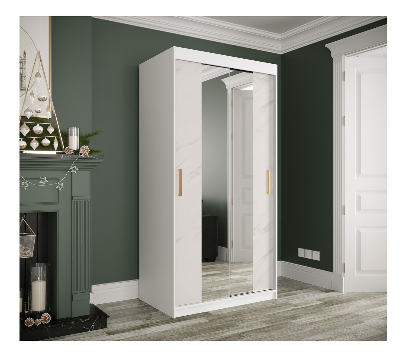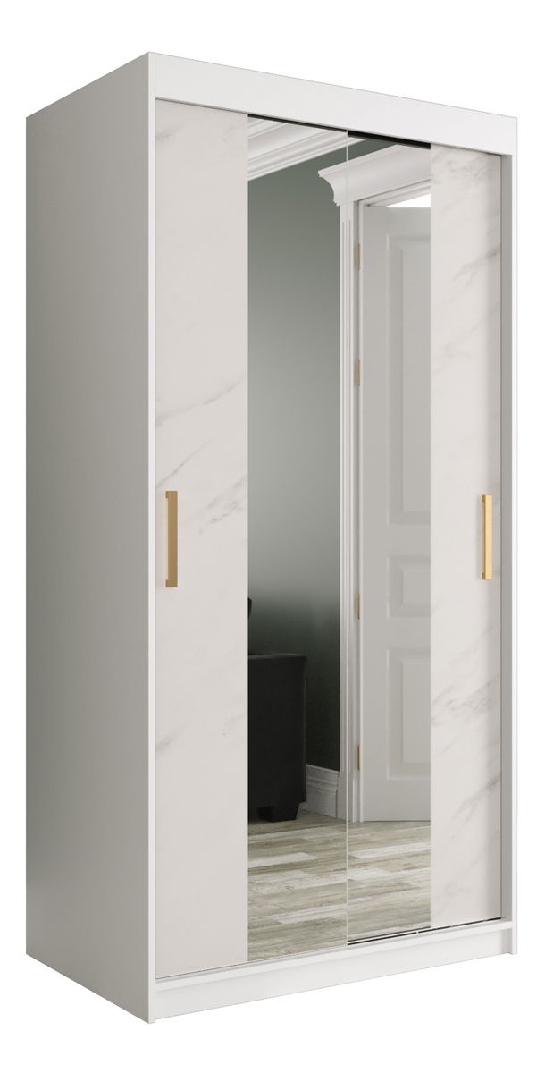 Šatní skříň 100 cm Marbelo T1 (matná bílá + bílý mramor)