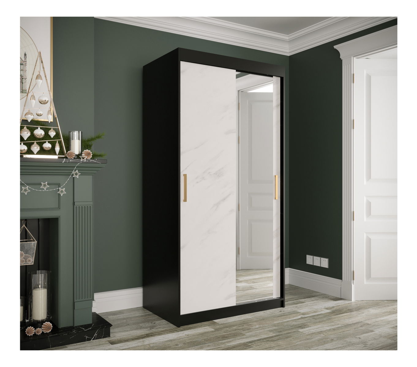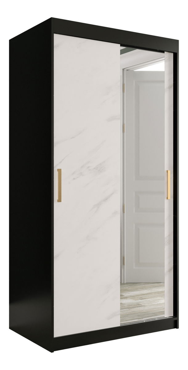Šatní skříň 100 cm Marbelo T2 (matná černá + bílý mramor)