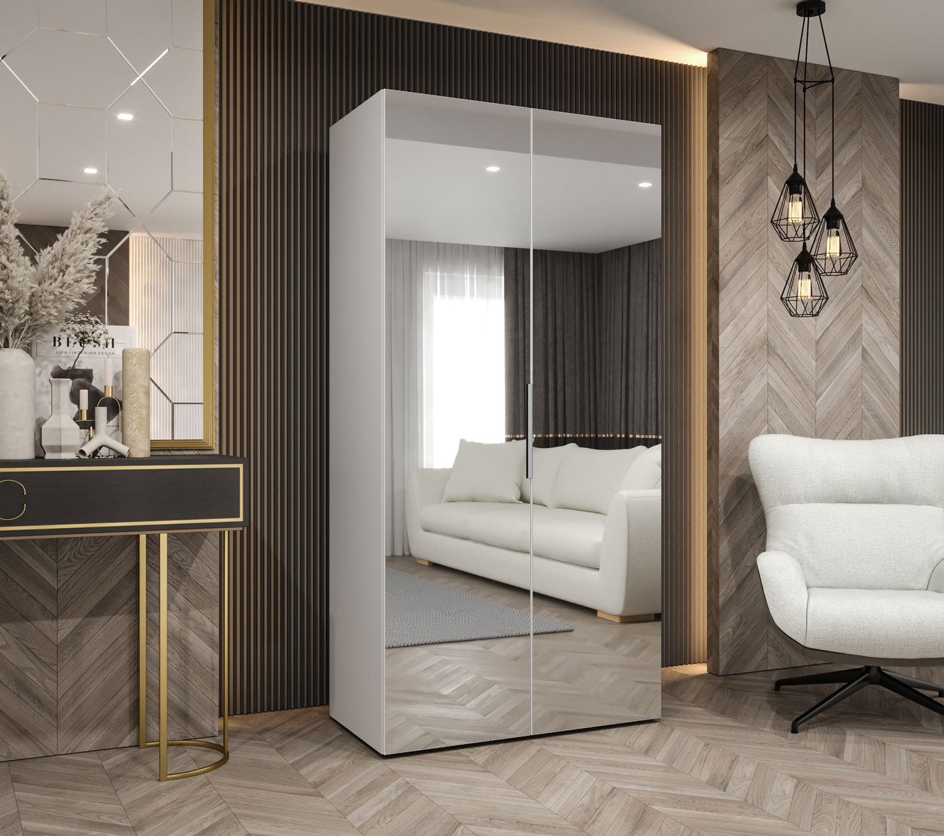 Kolekce šatní skříní Mirabella se zrcadlovými dveřmi kombinuje eleganci a funkčnost a promění vaši ložnici. Díky pěti různým šířkám si můžete šatník snadno přizpůsobit svým potřebám a velikosti místnosti. Další výhodou je možnost dokoupení dalších polic, díky čemuž bude ještě funkčnější.