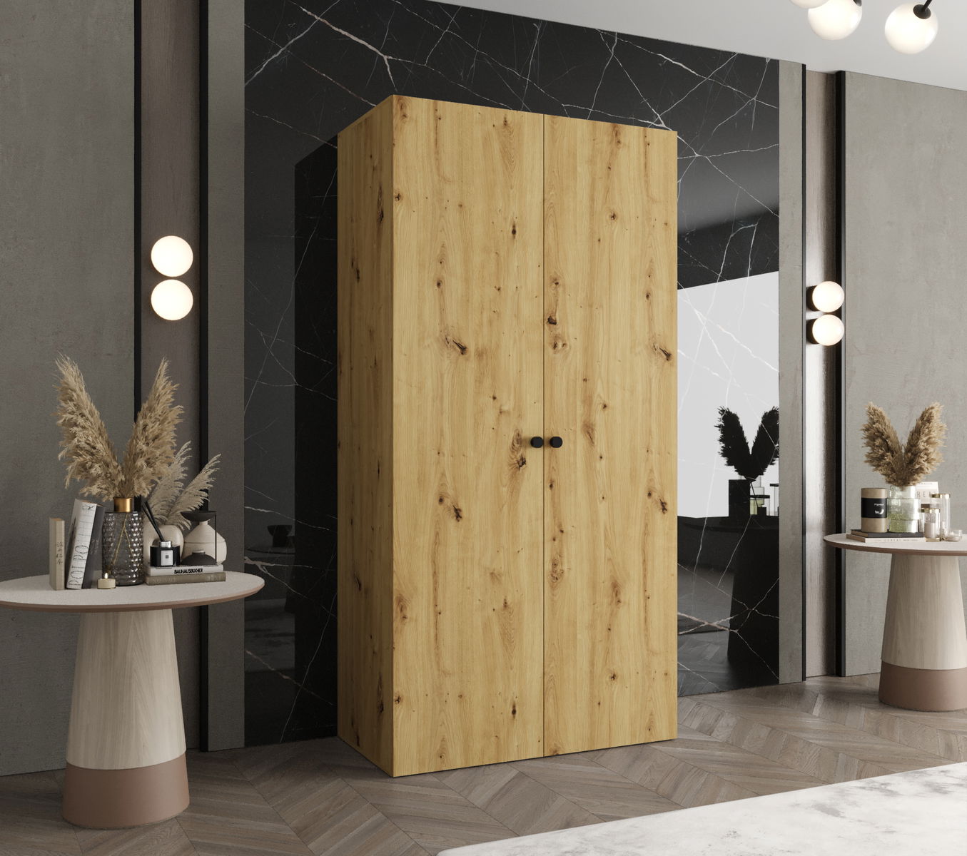 Šatní skříň 100 cm Parna 1 (dub artisan + černá)