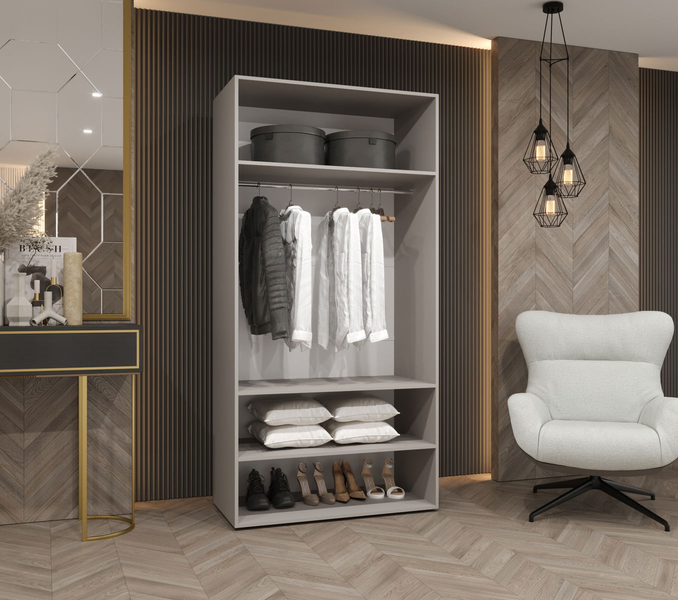 ZobrazitKolekce šatní skříní Parna kombinuje eleganci a funkčnost a promění vaši ložnici. Díky pěti různým šířkám si můžete šatník snadno přizpůsobit svým potřebám a velikosti místnosti. Další výhodou je možnost dokoupení dalších polic, díky čemuž bude ještě funkčnější.