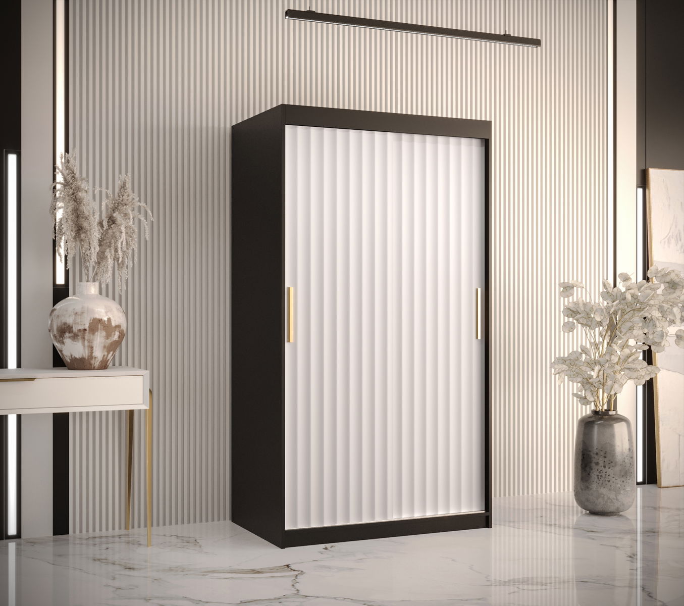 - Šatní skříň 100 cm Riana Wa 1 120 (černá matná + bílá matná)