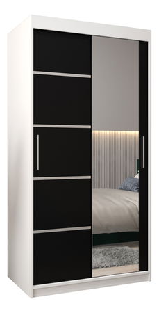 Šatní skříň 100 cm se zrcadlem Verika 2 100 (bílá + černá)