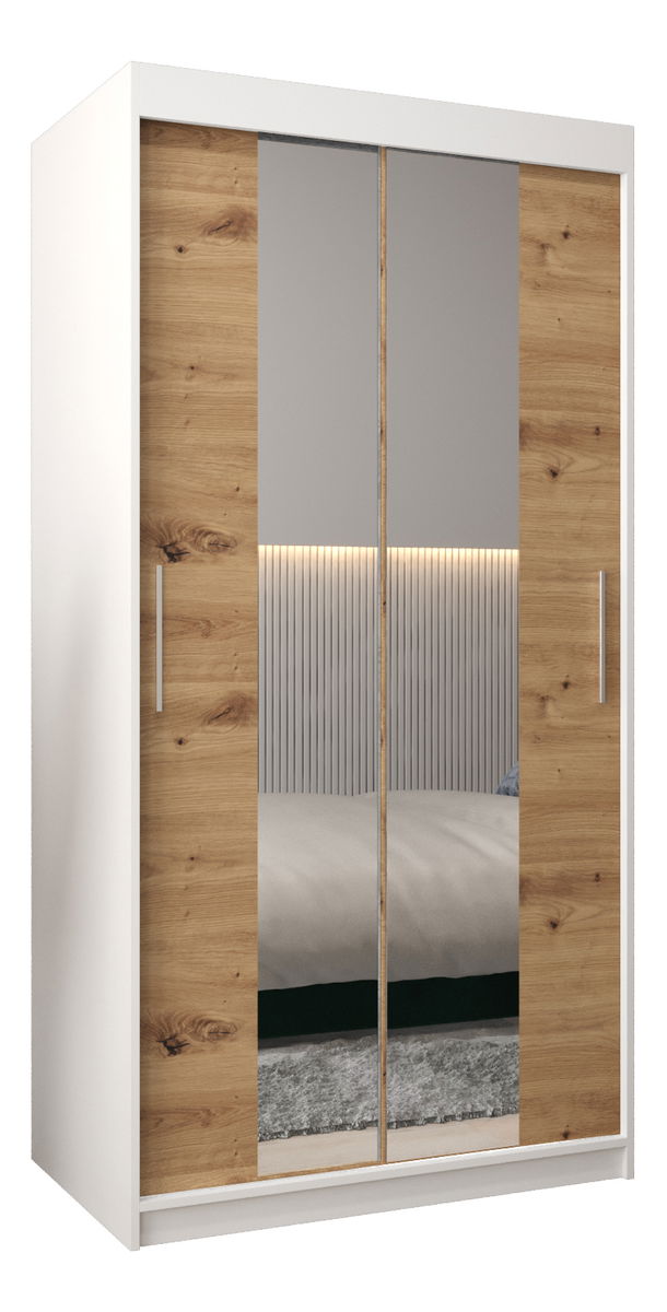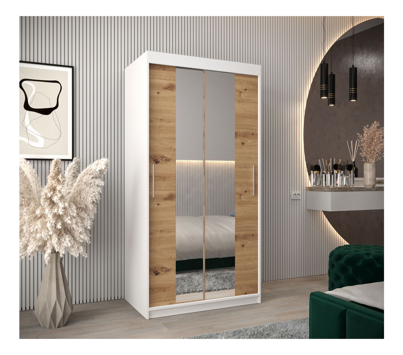 Šatní skříň 100 cm Toki 1 (Bílá matná + Dub artisan)
