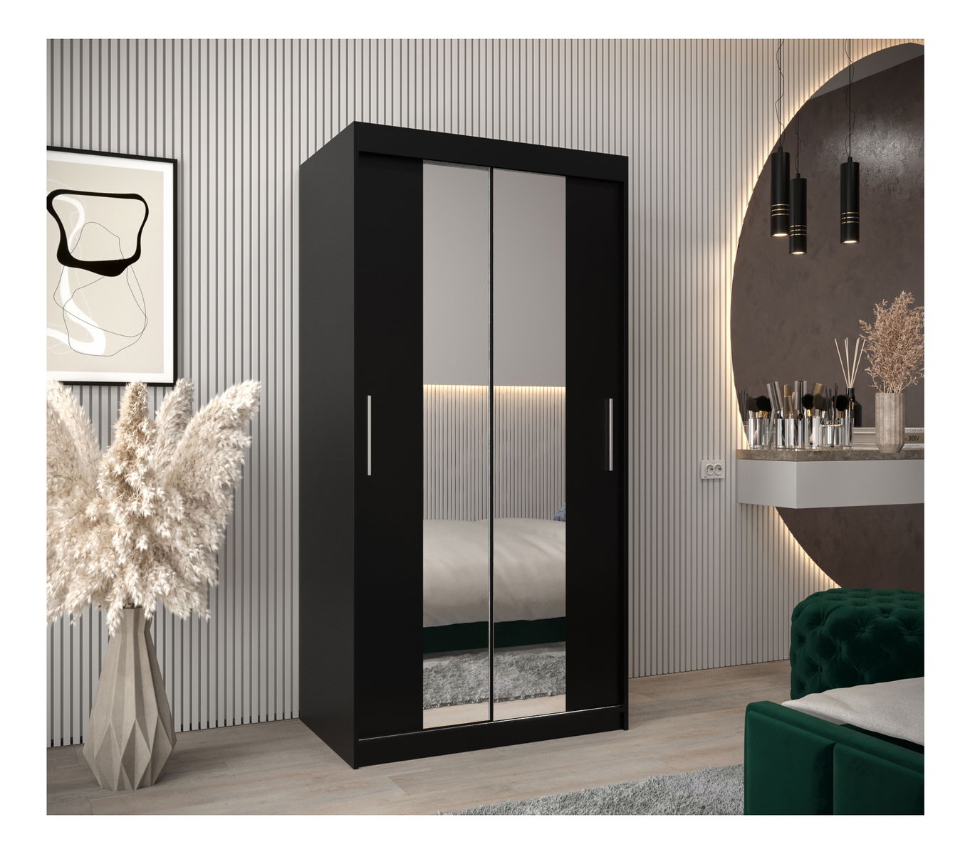 Šatní skříň 100 cm Toki 1 (Černá matná + Černá matná)