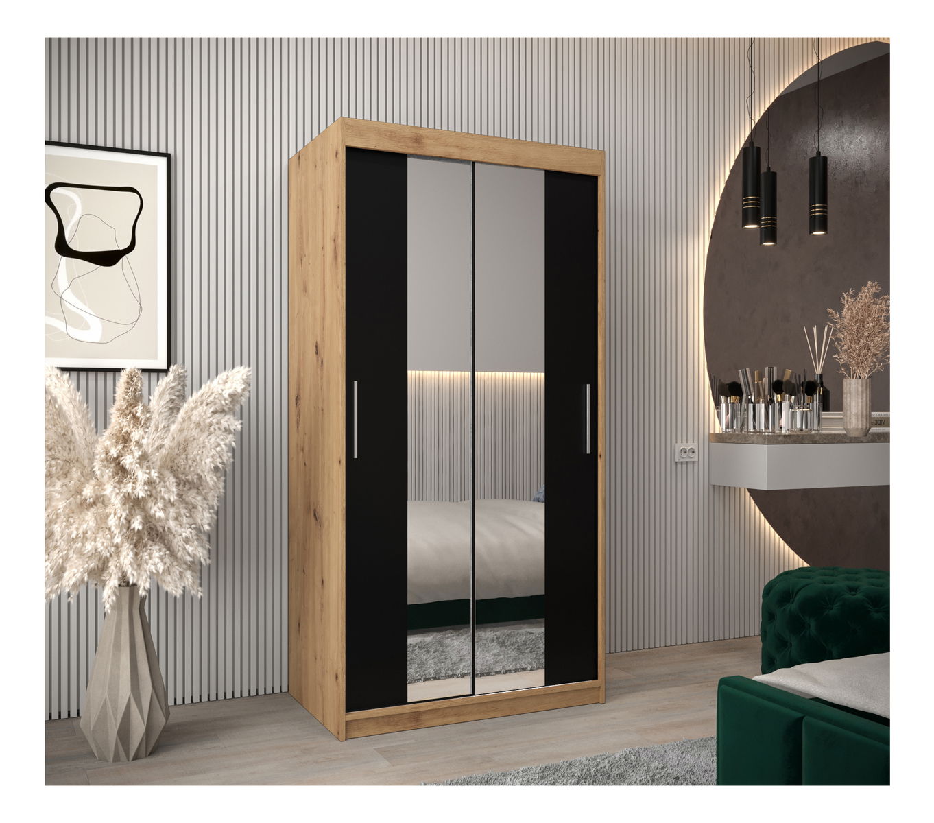 Šatní skříň 100 cm Toki 1 (Dub artisan + Černá matná)