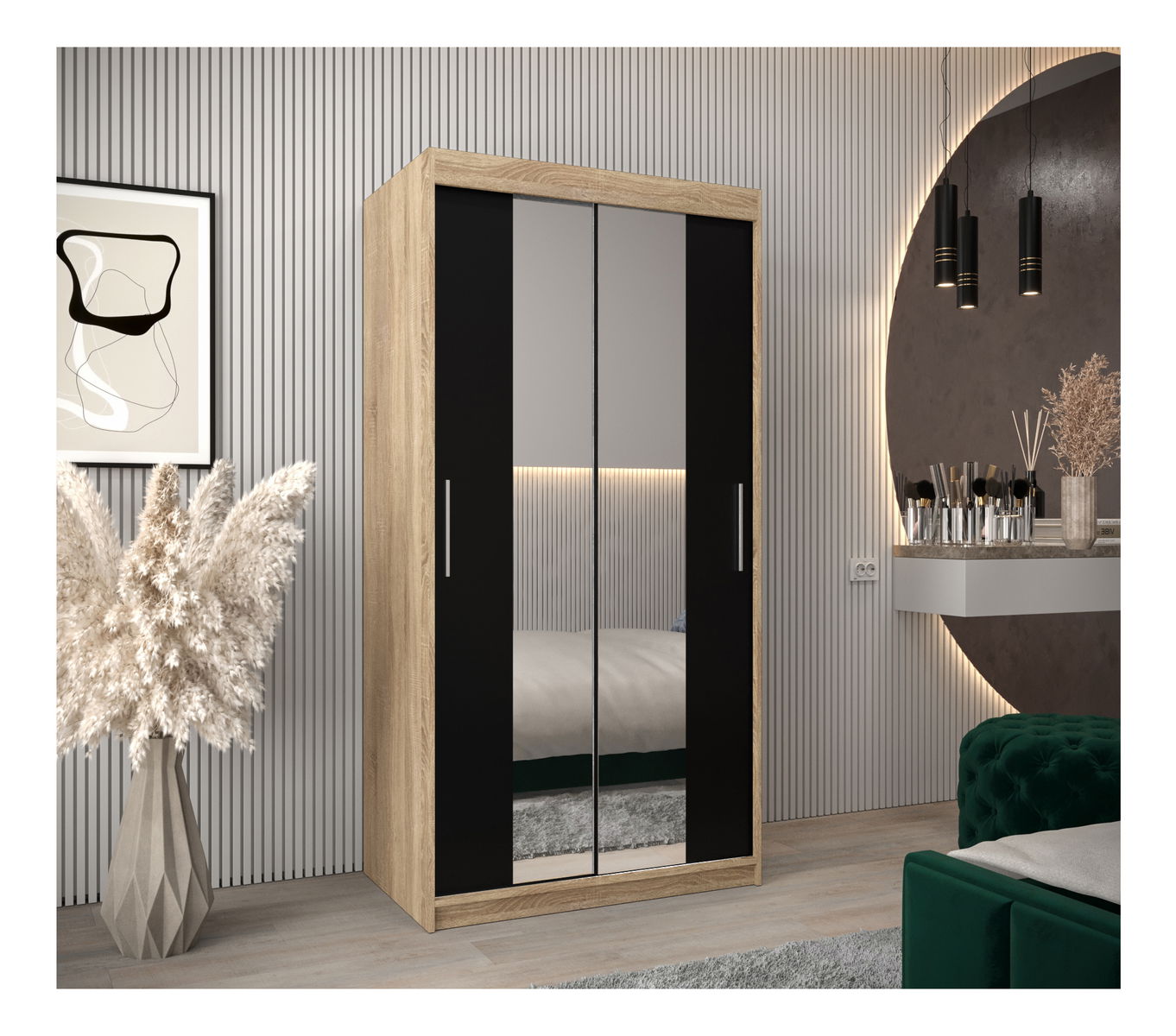 Šatní skříň 100 cm Toki 1 (Dub sonoma + Černá matná)