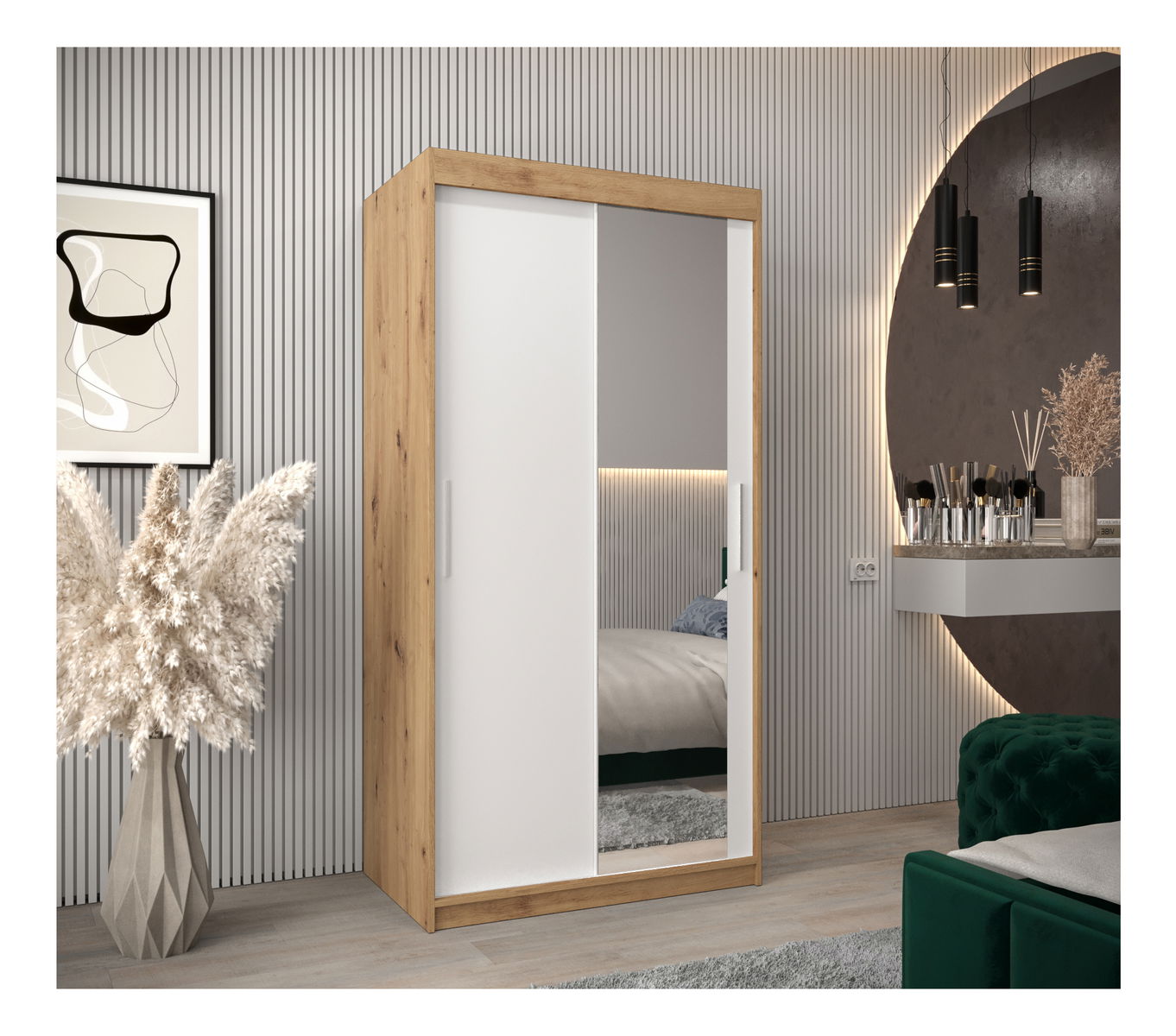 Šatní skříň 100 cm Toki 2 (Dub artisan + Bílá matná)
