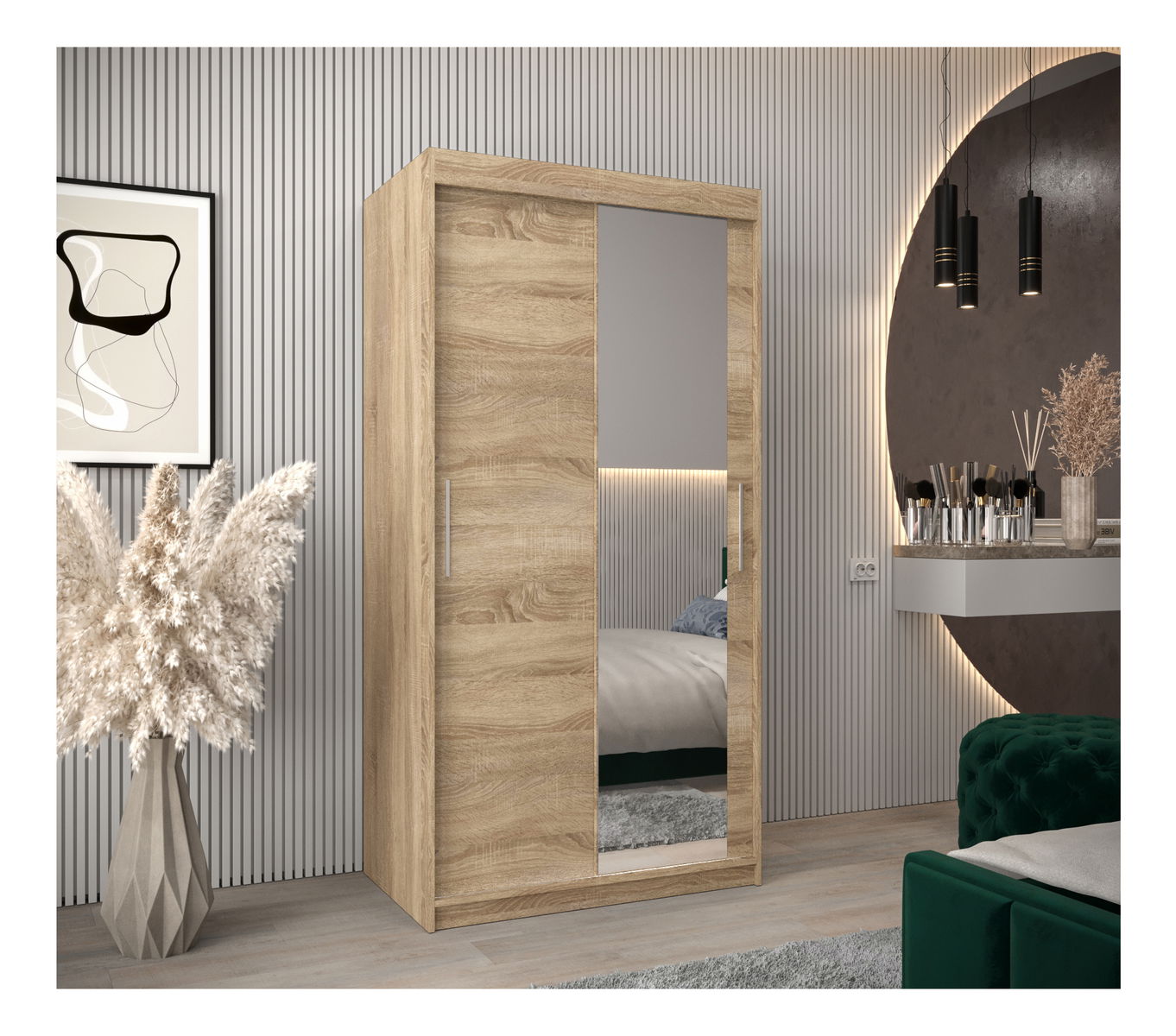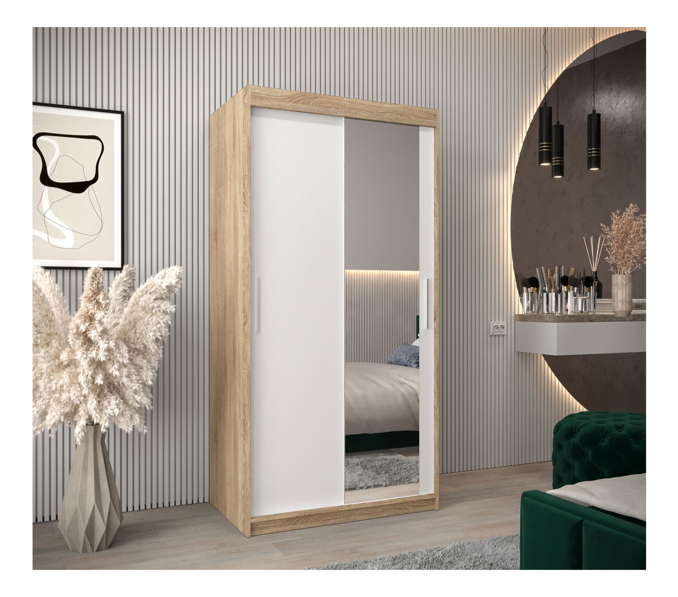 Šatní skříň 100 cm Toki 2 (Dub sonoma + Bílá matná)