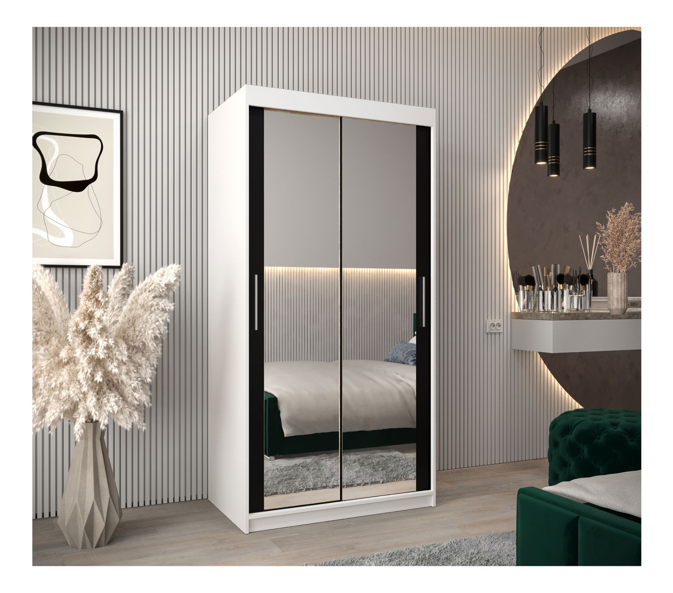Šatní skříň 100 cm Toki 3 (Bílá matná + Černá matná)