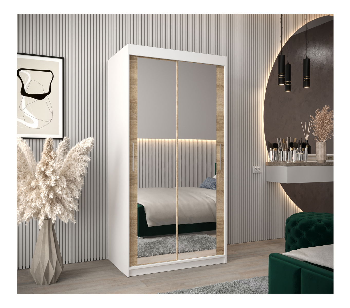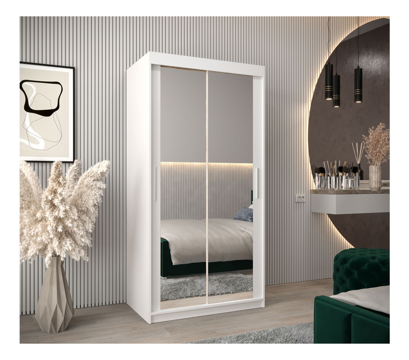 ZobrazitPředstavujeme šatní skříň Toki s posuvnými dveřmi - elegantní a moderní úložné řešení pro moderní domácnost. Šatní skříň Toki je vybavena inovativním posuvným systémem LAGUNA, který zajišťuje bezproblémový přístup do skříně a má stříbrné plastové úchytky pro minimalistický nádech. Díky zrcadlu, které zdobí posuvné dveře, nabízí pohodlí i styl. Tato šatní skříň je navržena tak, aby pozvedla váš prostor, a kombinuje praktičnost s minimalistickou estetikou. Snadno si v ní uspořádáte potřebné věci a dodáte svému pokoji nádech moderní elegance. Šatní skříň Toki s posuvnými dveřmi je ztělesněním formy a funkčnosti.