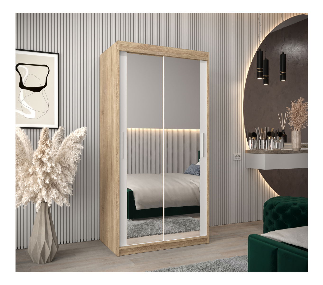 ZobrazitPředstavujeme šatní skříň Toki s posuvnými dveřmi - elegantní a moderní úložné řešení pro moderní domácnost. Šatní skříň Toki je vybavena inovativním posuvným systémem LAGUNA, který zajišťuje bezproblémový přístup do skříně a má stříbrné plastové úchytky pro minimalistický nádech. Díky zrcadlu, které zdobí posuvné dveře, nabízí pohodlí i styl. Tato šatní skříň je navržena tak, aby pozvedla váš prostor, a kombinuje praktičnost s minimalistickou estetikou. Snadno si v ní uspořádáte potřebné věci a dodáte svému pokoji nádech moderní elegance. Šatní skříň Toki s posuvnými dveřmi je ztělesněním formy a funkčnosti.