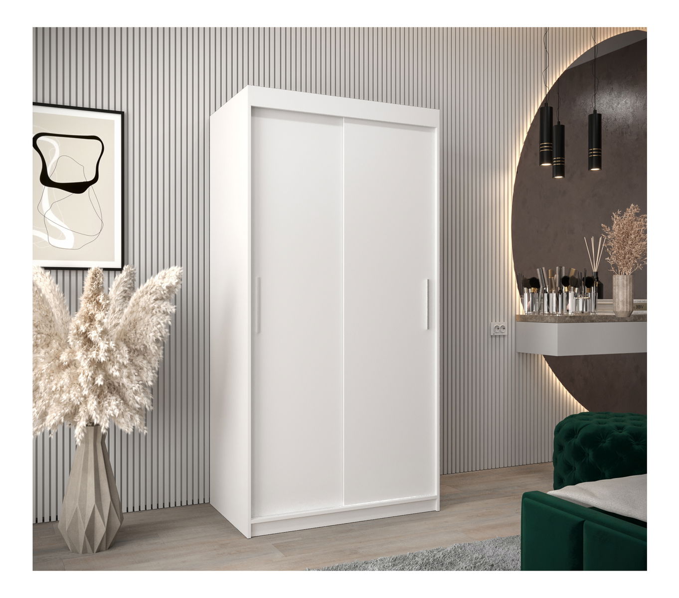 ZobrazitPředstavujeme šatní skříň Toki s posuvnými dveřmi - elegantní a moderní úložné řešení pro moderní domácnost. Šatní skříň Toki je vybavena inovativním posuvným systémem LAGUNA, který zajišťuje bezproblémový přístup do skříně a má stříbrné plastové úchytky pro minimalistický nádech. Tato šatní skříň je navržena tak, aby pozvedla váš prostor a spojila praktičnost s minimalistickou estetikou. Snadno si v ní uspořádáte potřebné věci a dodáte svému pokoji nádech moderní elegance. Šatní skříň Toki s posuvnými dveřmi je ztělesněním formy a funkčnosti a nabízí stylový úložný prostor, aniž by slevila z jednoduchosti.