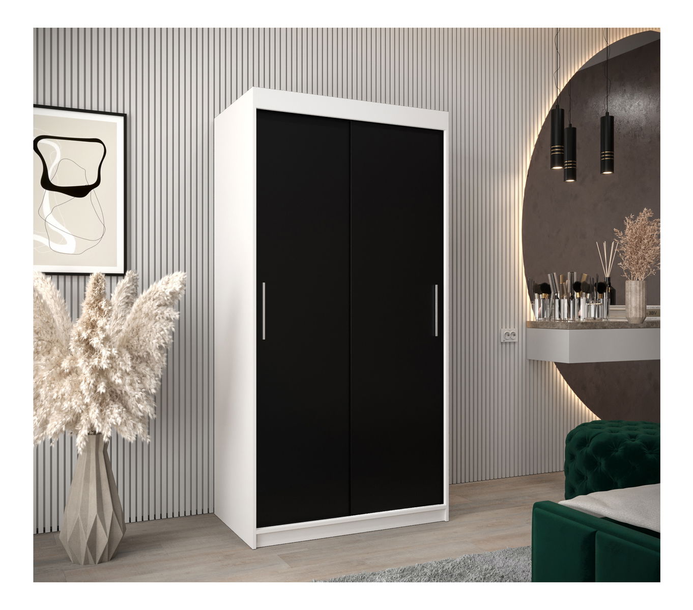 Šatní skříň 100 cm Toki (Bílá matná + Černá matná)