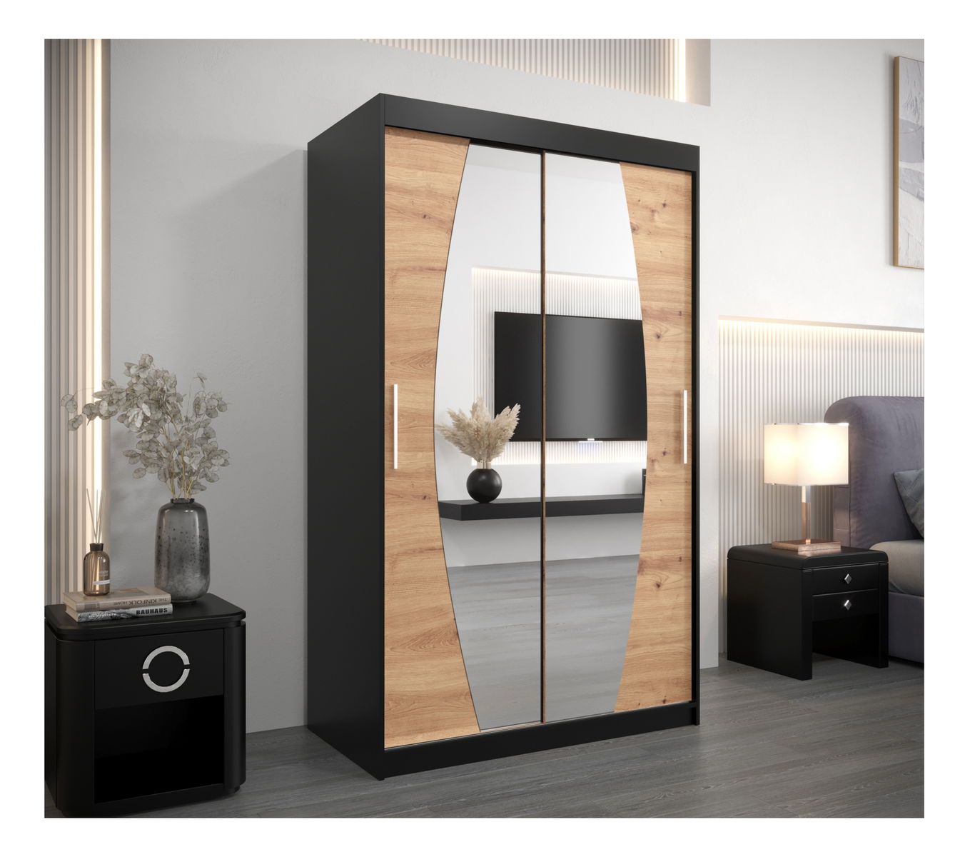 Šatní skříň 120 cm Eclipse (černá matná + dub artisan)