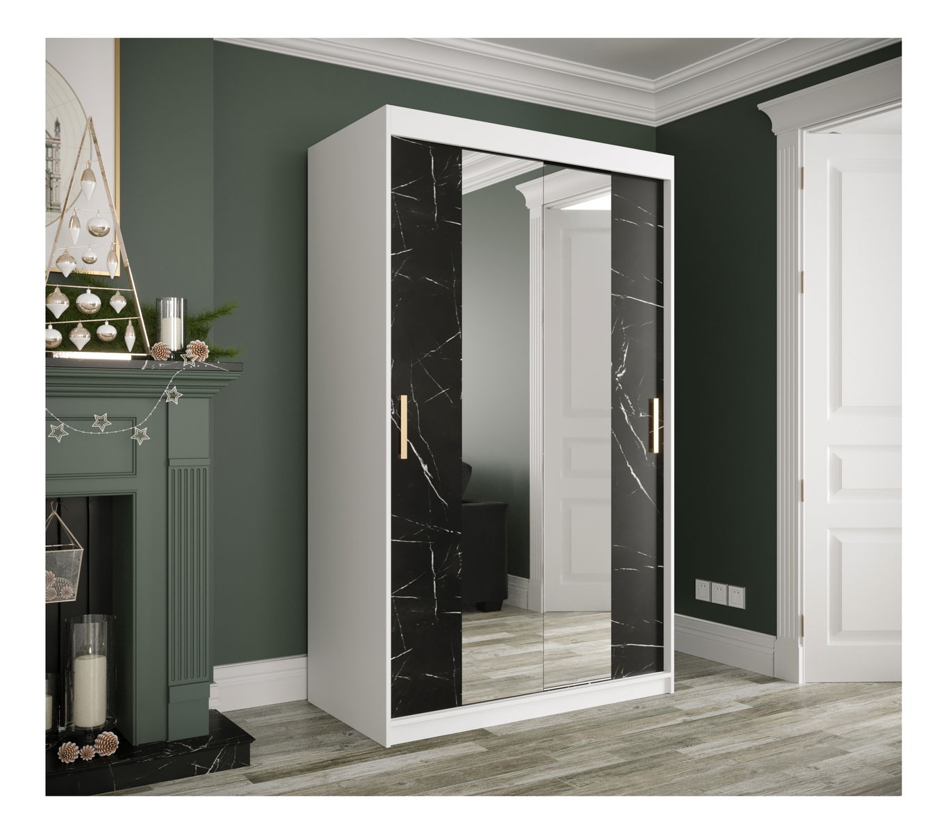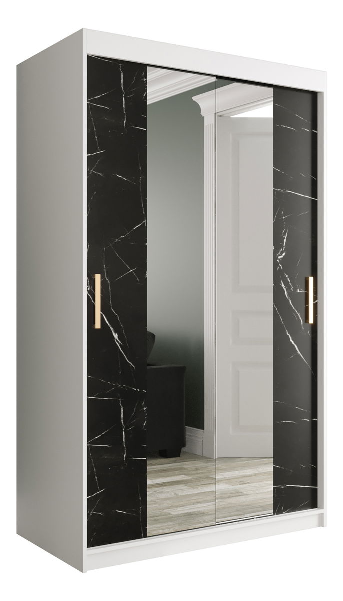 Šatní skříň 120 cm Marbelo T1 (matná bílá + černý mramor)
