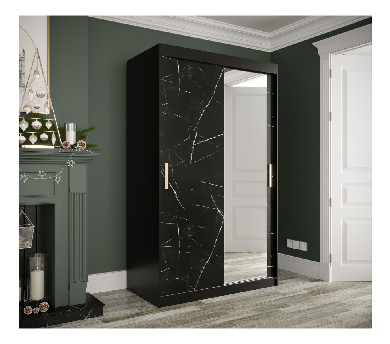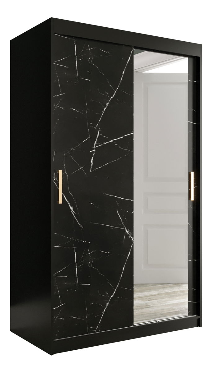 Šatní skříň 120 cm Marbelo T2 (matná černá + černý mramor)