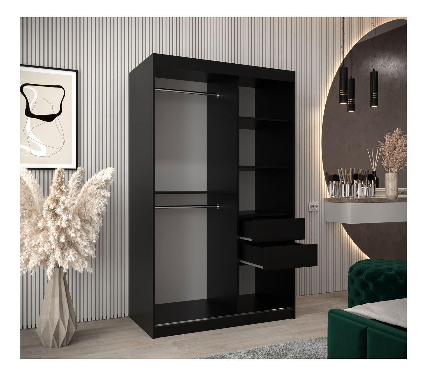 Šatní skříň 120 cm Toki 2 (Černá matná + Černá matná)