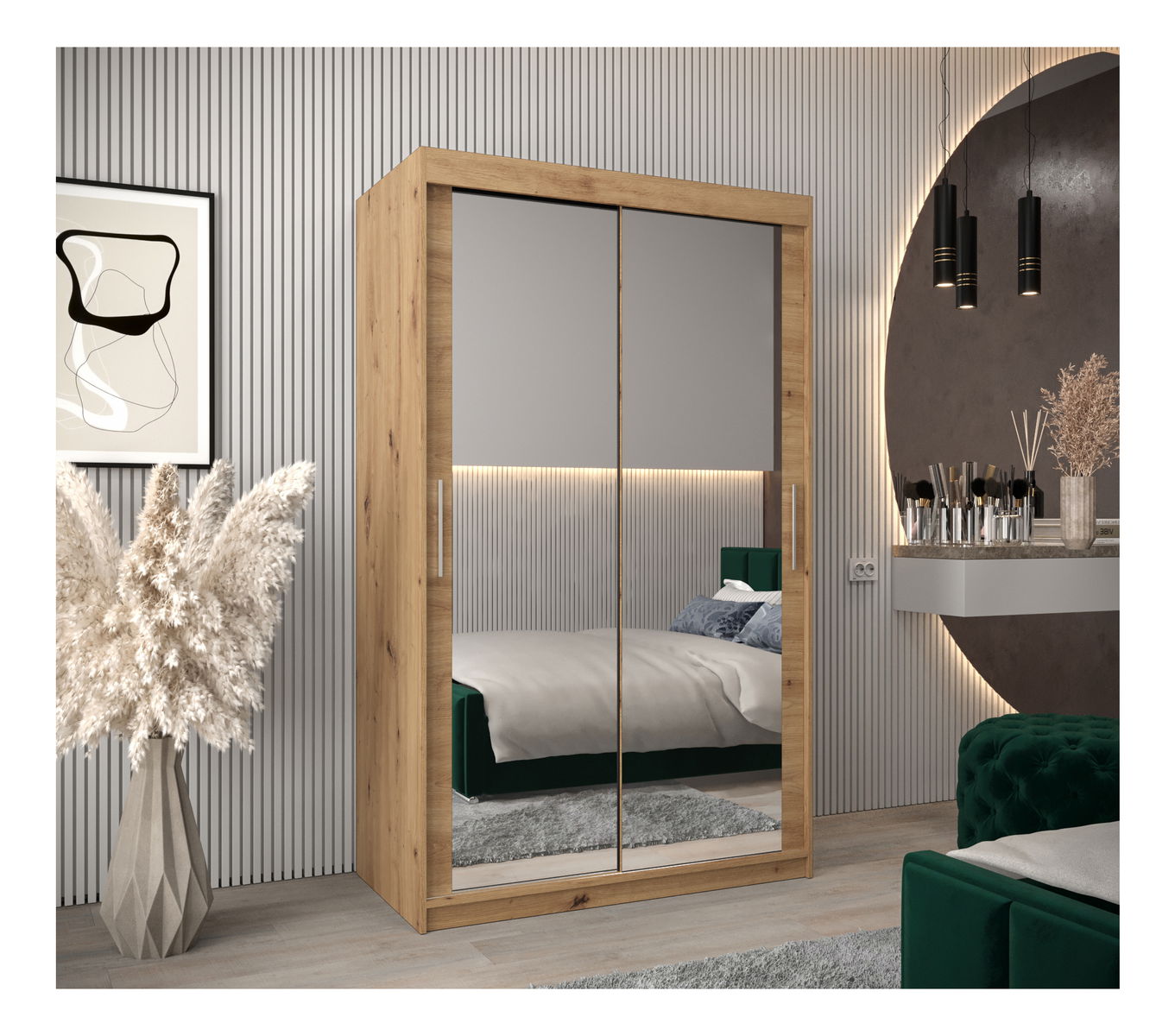 ZobrazitPředstavujeme šatní skříň Toki s posuvnými dveřmi - elegantní a moderní úložné řešení pro moderní domácnost. Šatní skříň Toki je vybavena inovativním posuvným systémem LAGUNA, který zajišťuje bezproblémový přístup do skříně a má stříbrné plastové úchytky pro minimalistický nádech. Díky zrcadlu, které zdobí posuvné dveře, nabízí pohodlí i styl. Tato šatní skříň je navržena tak, aby pozvedla váš prostor, a kombinuje praktičnost s minimalistickou estetikou. Snadno si v ní uspořádáte potřebné věci a dodáte svému pokoji nádech moderní elegance. Šatní skříň Toki s posuvnými dveřmi je ztělesněním formy a funkčnosti.